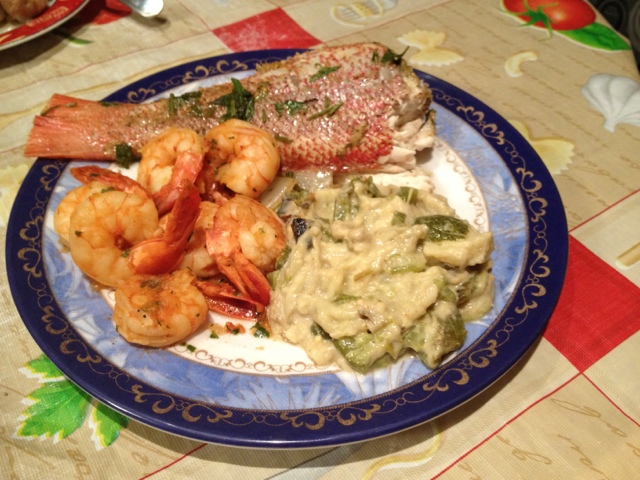 Oven roasted chicken! Had my self a leg and some of the yummy mushrooms on the side. Not pictured also is the side salad we had, and copious amounts of water + my PAG supplement.